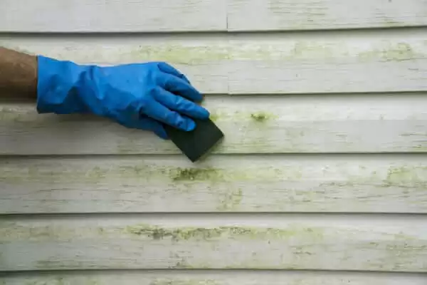 Handyman or homeowners trying to use high-pressure power washers to clean siding often end up with streaked siding due to the high pressure removing oxidation in uneven patterns. The internet is full video and photos of damaged siding caused by power washing or inexperienced operators. Algae is not completely removed or killed by high-pressure water as water does not kill algae, in fact, water makes it grow faster. The siding may look clean but there are still microscopic algae spores on the siding that quickly reproduce and the “cleaning” will only last about 6 months. This method also requires the use of ladders on two-story homes and those ladders can damage the siding and make it dangerous for the operator trying to work 15-20 feet off the ground with a heavy hose and high-pressure water.