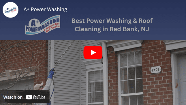 A+ Power Washing and Roof Cleaning proudly serves Red Bank and the surrounding communities along the Navesink River and northern Monmouth County. Homeowners in nearby Little Silver and Middletown trust our team for safe, effective exterior cleaning, and we regularly work throughout Tinton Falls and Rumson as well. Whether your home is a Victorian on the East Side, a ranch on the West Side, or a condo up on The Hill, we bring the same hot water soft wash process that’s earned us nearly 1,500 five-star reviews from homeowners across the region.